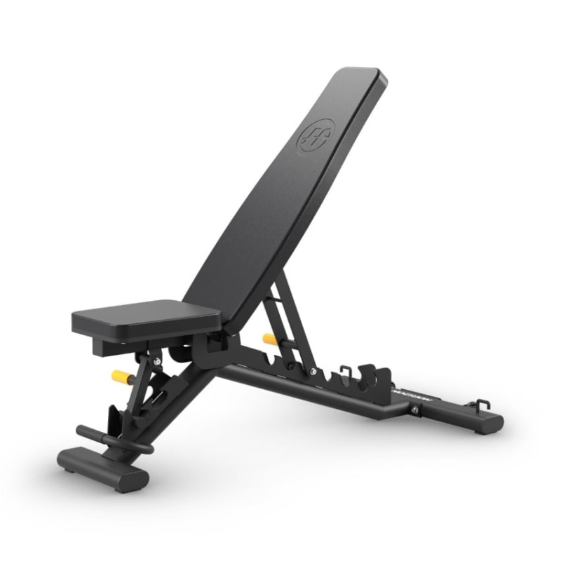 Su respaldo ajustable en 7 posiciones (de -13° a 83°) y asiento con 2 niveles de inclinación (0° y 13°) ofrecen una postura estable y cómoda en cada repetición.